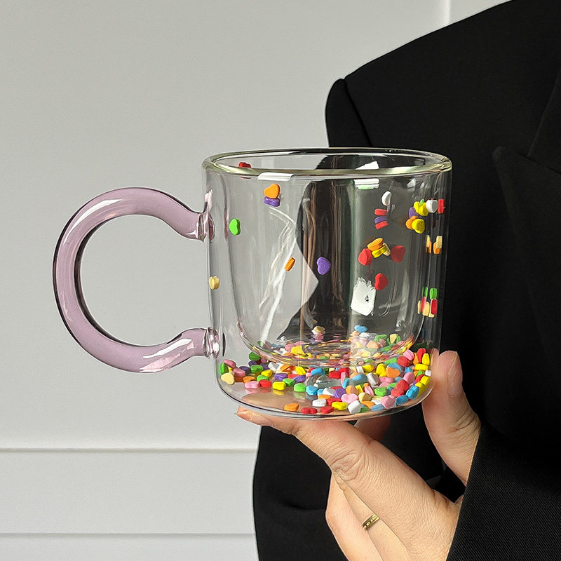 ins创意双层彩色爱心啵啵杯可爱玻璃杯耐热高颜值礼物杯子少女心