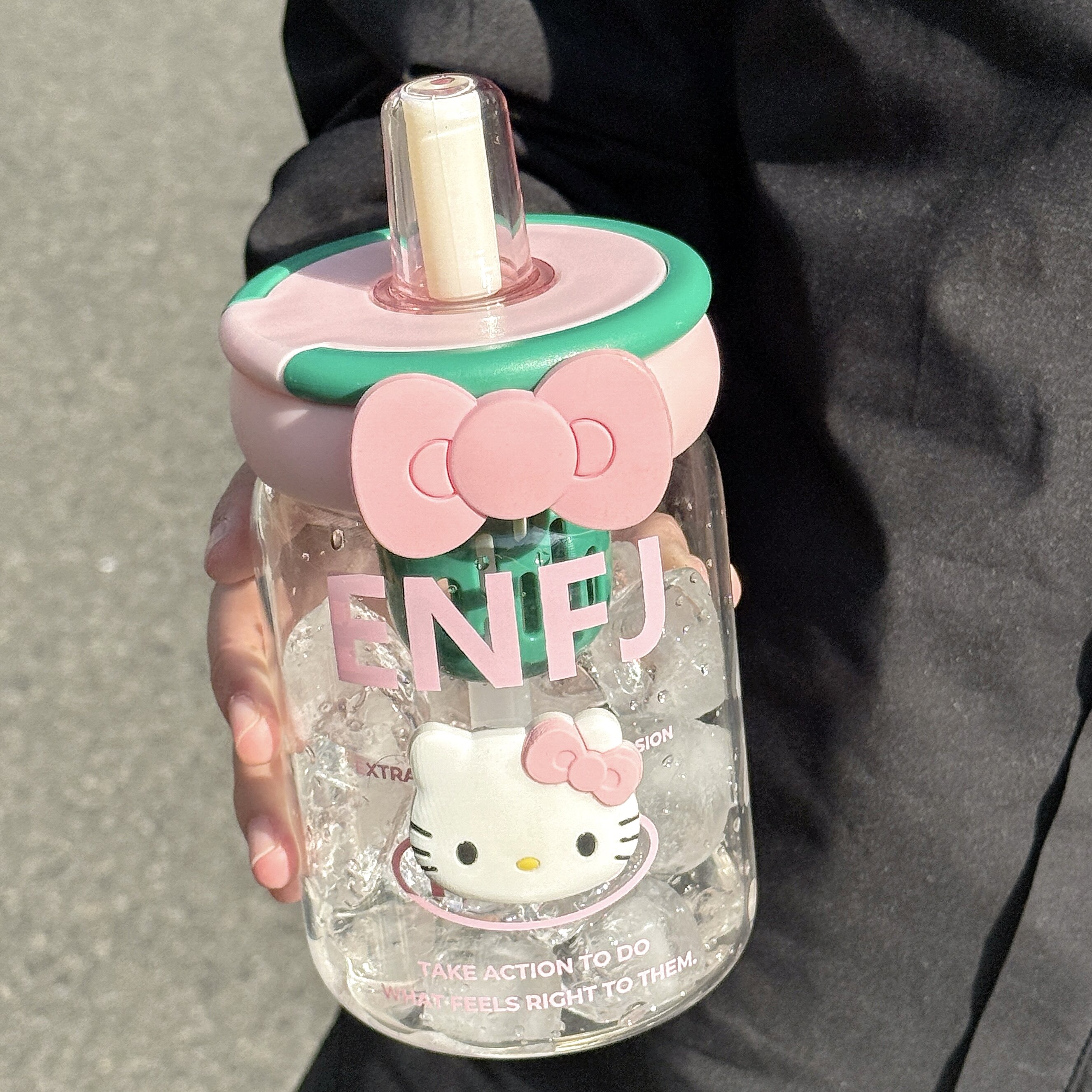 元森商店 KT猫咪可爱玻璃杯夏季粉色少女心透明水杯创意吸管杯