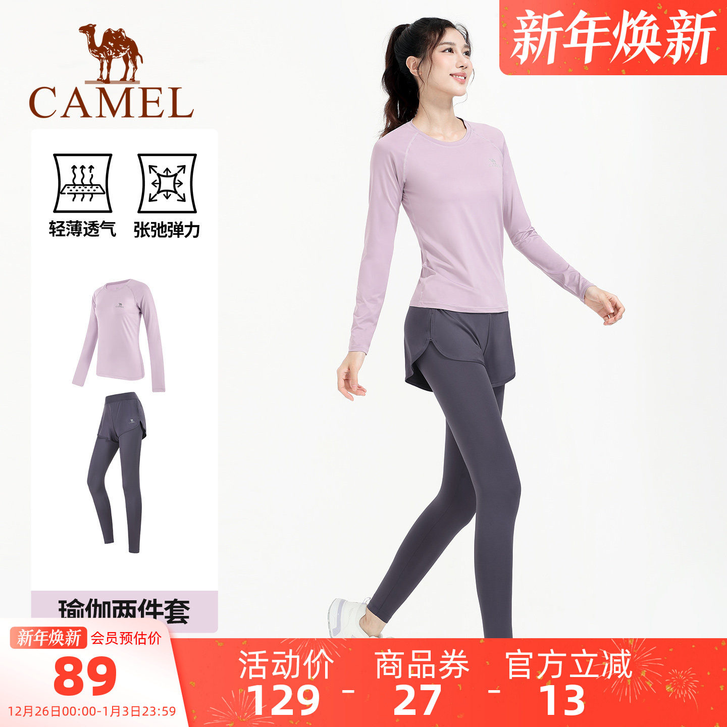 骆驼瑜伽服套装女款秋冬季防晒休闲跑步运动服时尚修身健身五件套