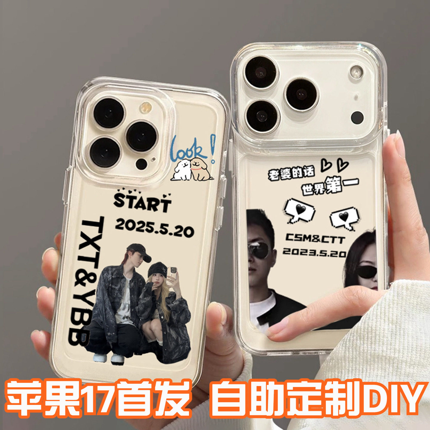 新款情侣定制手机壳透明订做图案iphone17promax适用苹果16亚克力硬壳宠物照片抠图14小米15华为p70任意机型