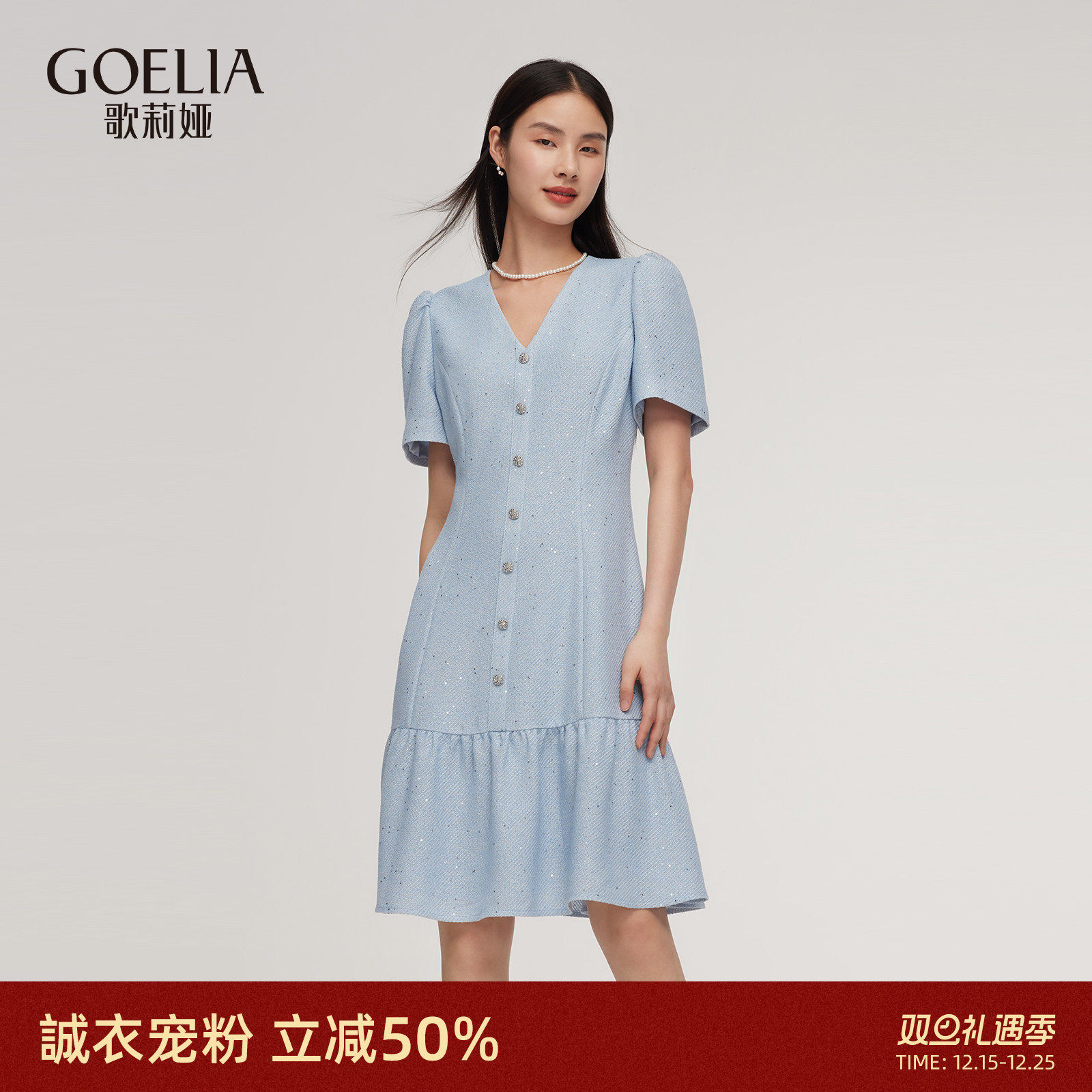 首降5折|歌莉娅小香风连衣裙女2025新款秋季重要场合醋酸V领裙子