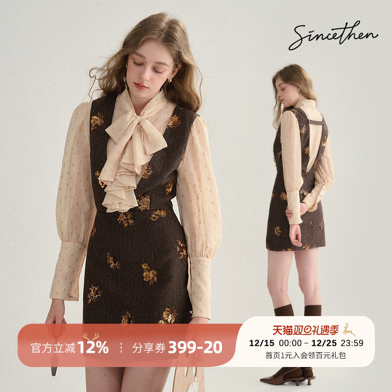 sincethen法式连衣裙小香风富家千金裙子订婚礼服裙女冬季穿搭冬
