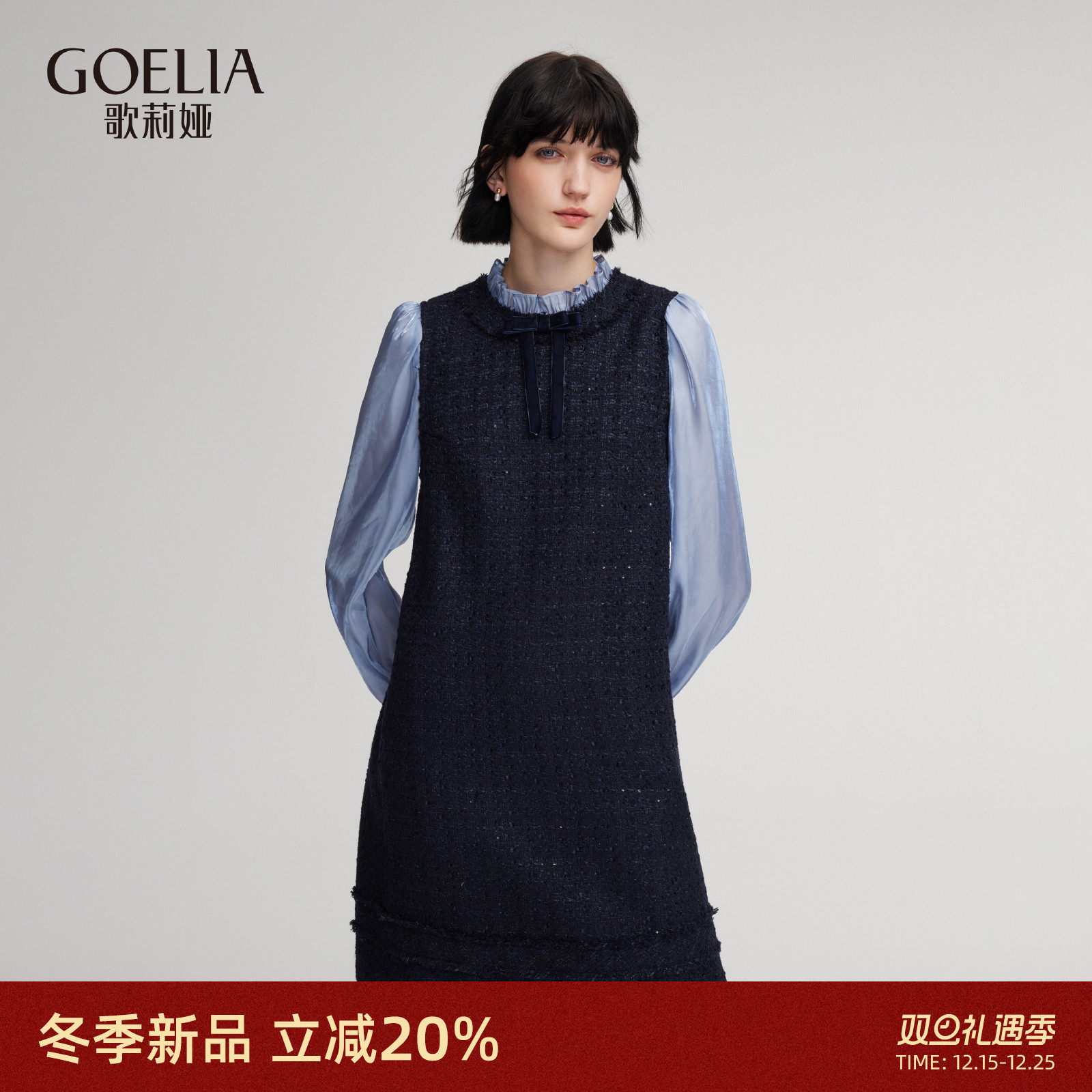 歌莉娅小香风连衣裙女秋冬2025新款重要场合假两件裙子1ENR4K470