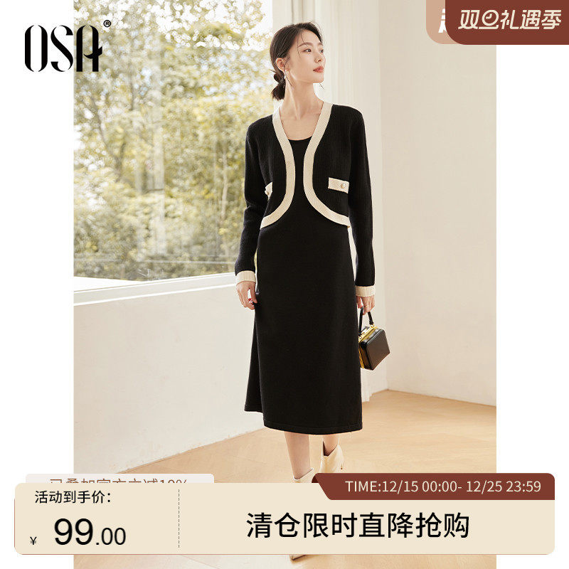 OSA欧莎小香风假两件连衣裙2024年新款女千金高级感穿搭收腰裙子