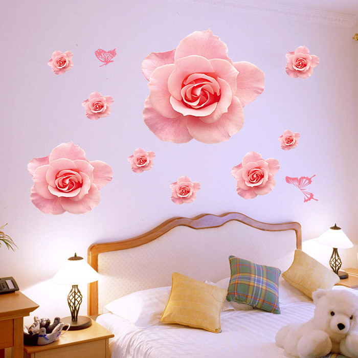 粉色玫瑰花墙贴浪漫卧室床头装饰贴画婚房少女心房间布置情侣贴纸
