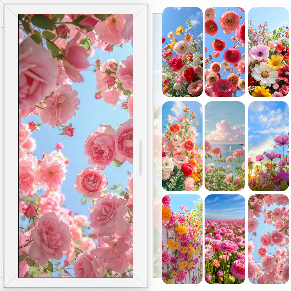 浪漫鲜花玻璃膜贴透光不透明客厅推拉门贴防偷窥浴室卧室窗户贴纸