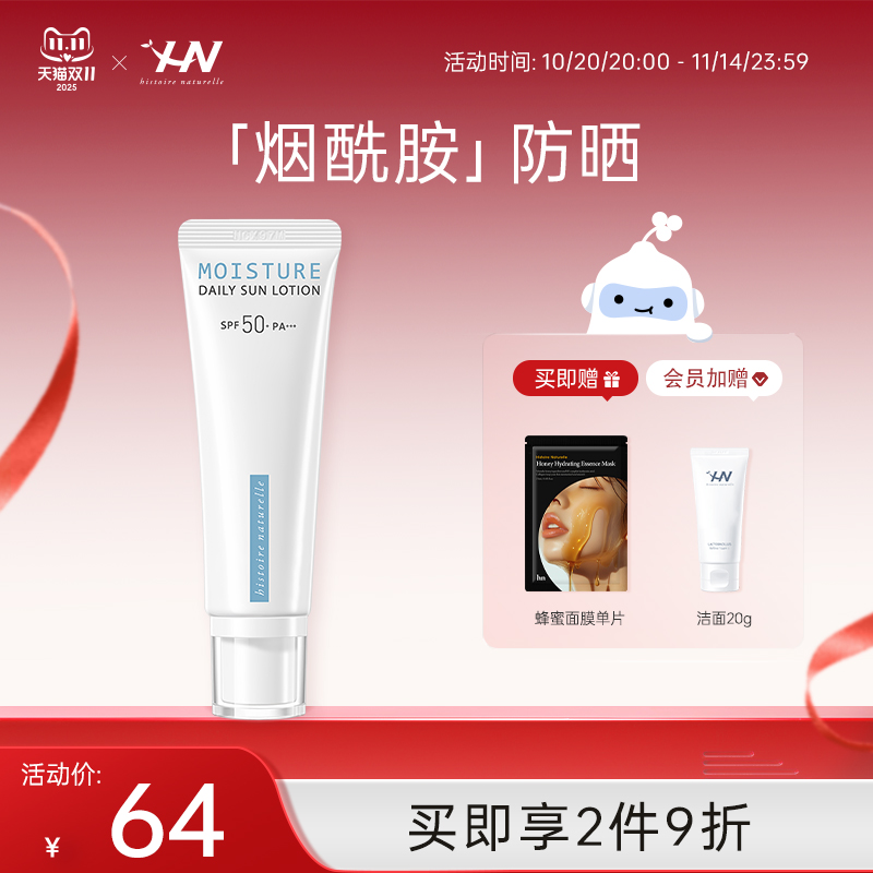 荷诺小白管防晒霜50ml水感面部美白隔离清爽防晒乳防紫外线SPF50+
