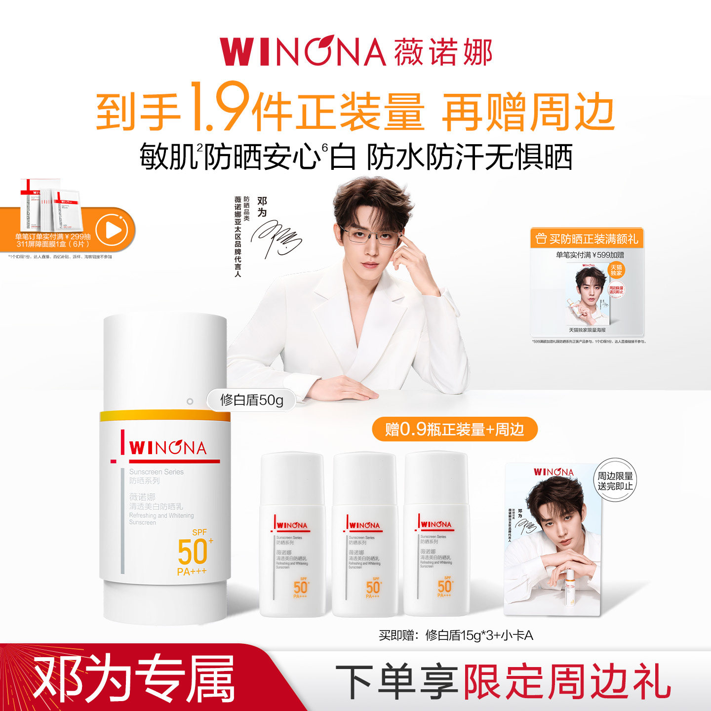 【代言人成毅同款】高姿防晒霜SPF50+防晒乳美白养肤面部隔离春夏