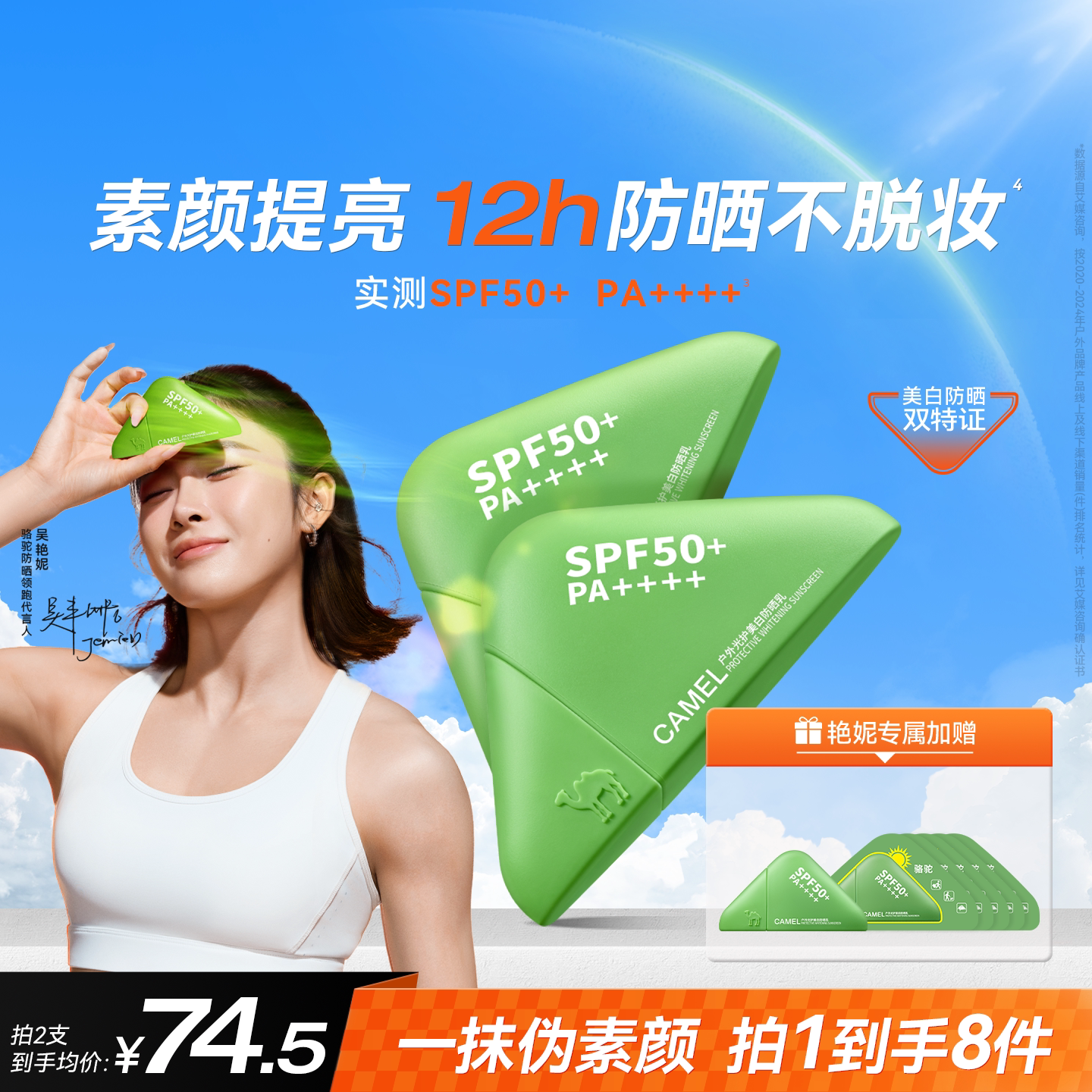 【吴艳妮同款】骆驼防晒霜高倍绿野美白隔离遮瑕乳素颜霜提亮肤色