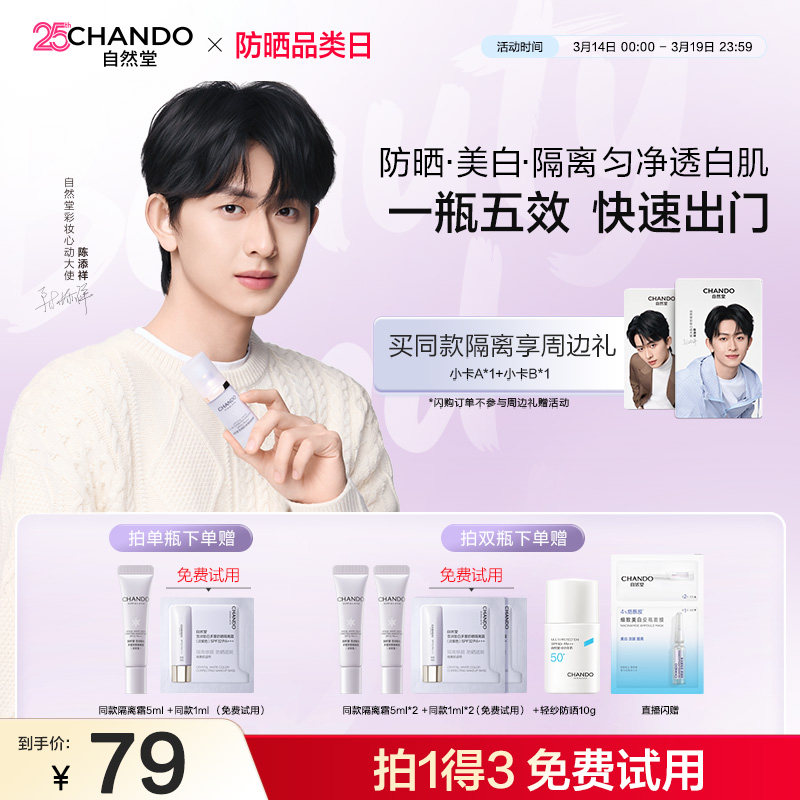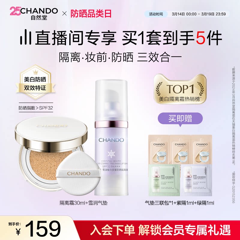 【店播专属】自然堂雪润防晒美白隔离妆前素颜霜三合一陈添祥同款