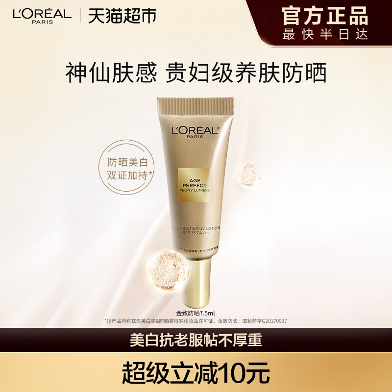 欧莱雅金致臻颜奢养粉妍防晒乳7.5ml*1支美白隔离霜清爽保湿户外
