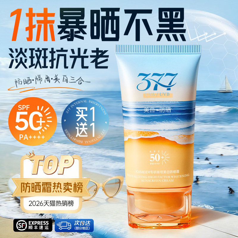 377防晒霜50倍防紫外线身体美白隔离乳男女生军训官方正品旗舰店