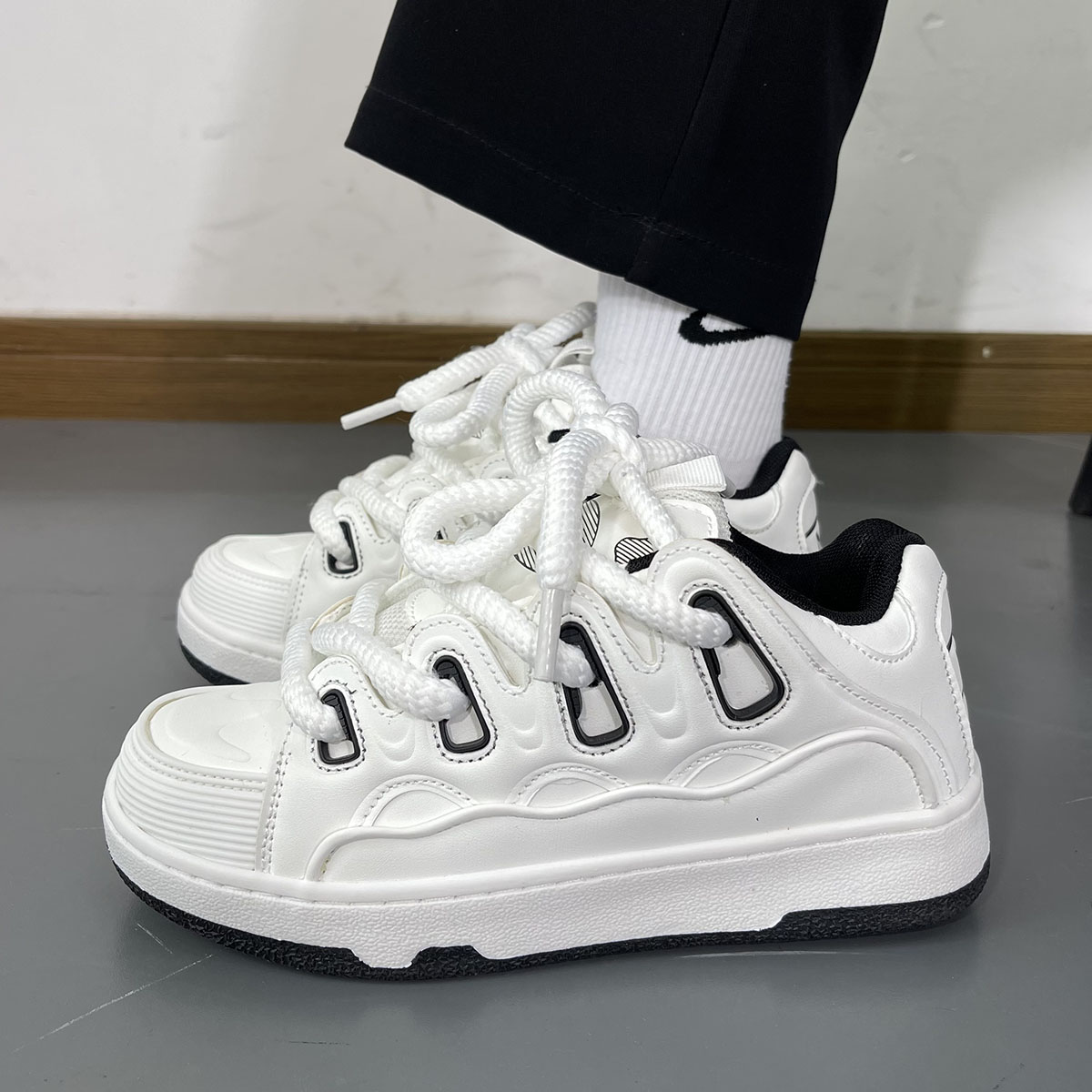 ins风小众撞色情侣面包鞋ulzzang原宿复古厚底透气运动板鞋男