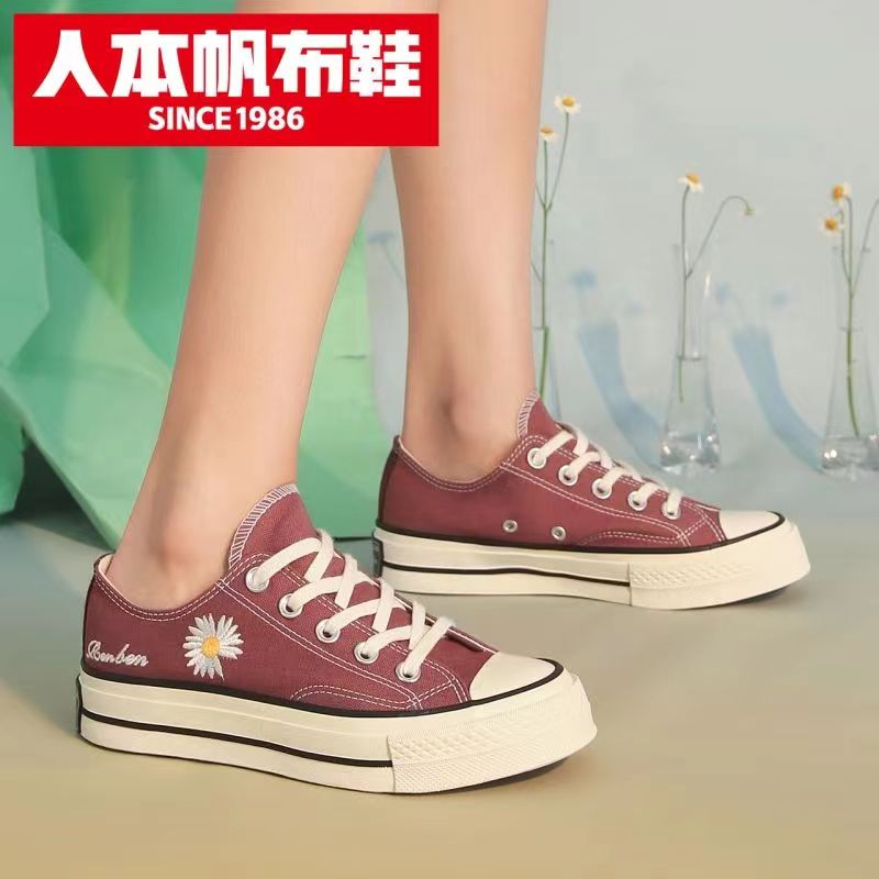 人本纯色网红情侣女学生小雏菊板鞋ulzzang百搭帆布鞋女日系清仓