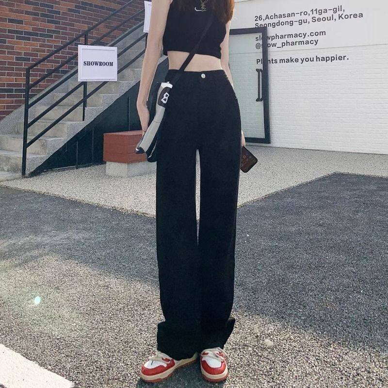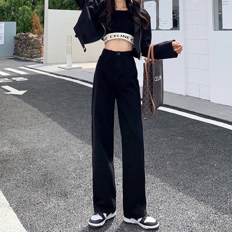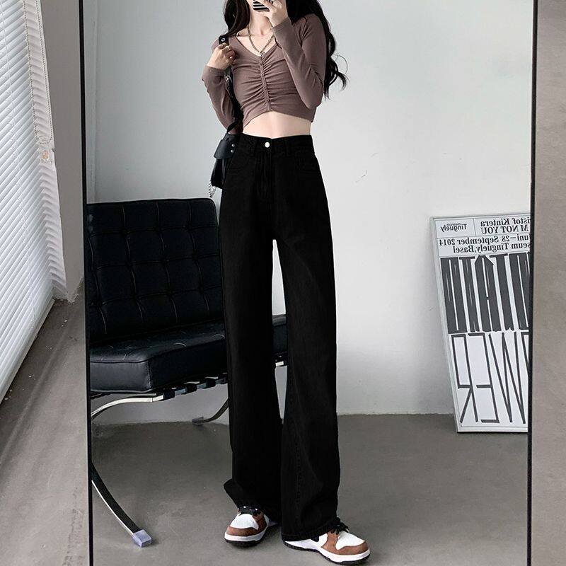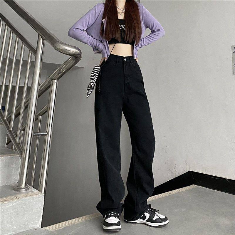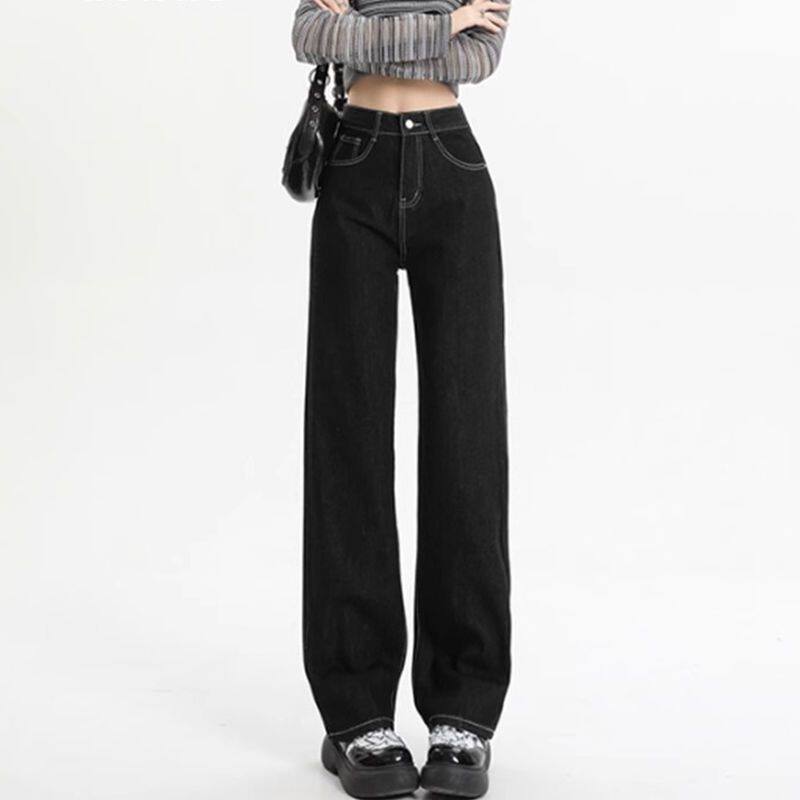 - 黑色牛仔裤女 韩版 宽松