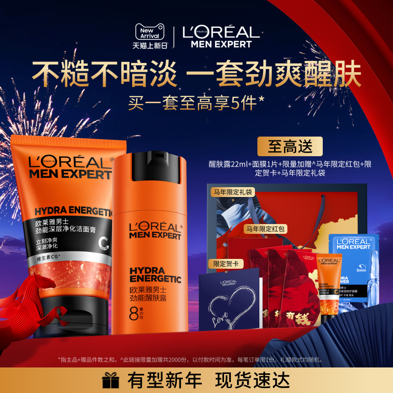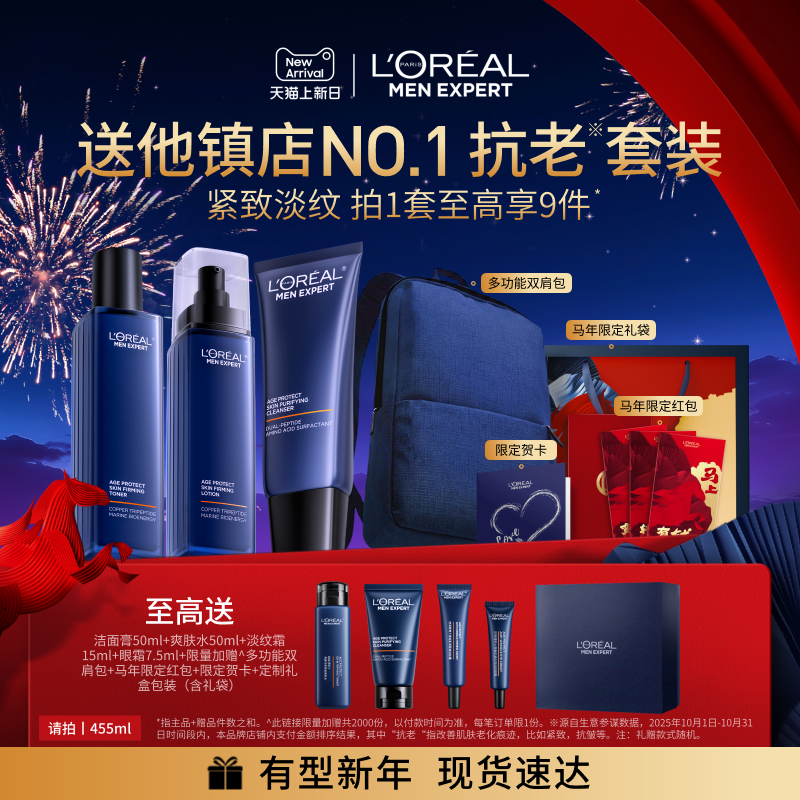 【新年礼物】欧莱雅男士淡纹水乳套装紧致保湿护肤品男生肖战同款