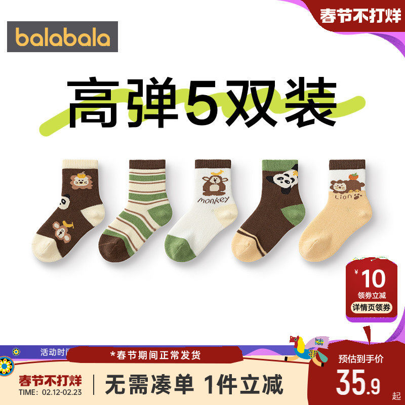 巴拉巴拉儿童袜子婴儿宝宝棉袜男童女童春秋季新款童袜中筒袜潮孩