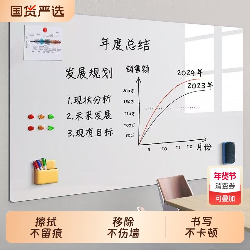 白板墙贴可移除磁性办公室儿童教学画板不伤墙家用黑板可擦写字板