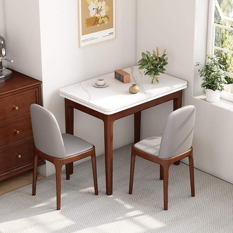 DIB岩板餐桌小户家用型可折叠缩实木现代简伸约胡色多功桃能饭桌