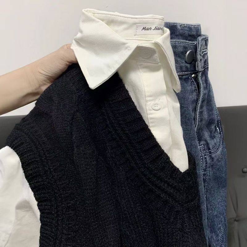 - 衬衫马甲两件套女