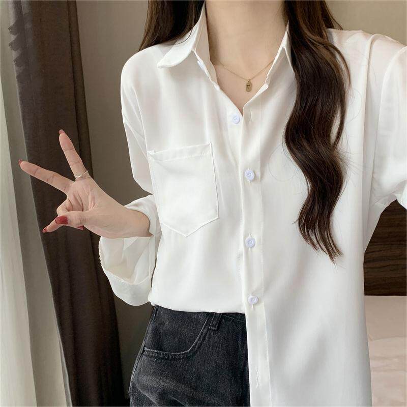 - 白色翻领衬衫女