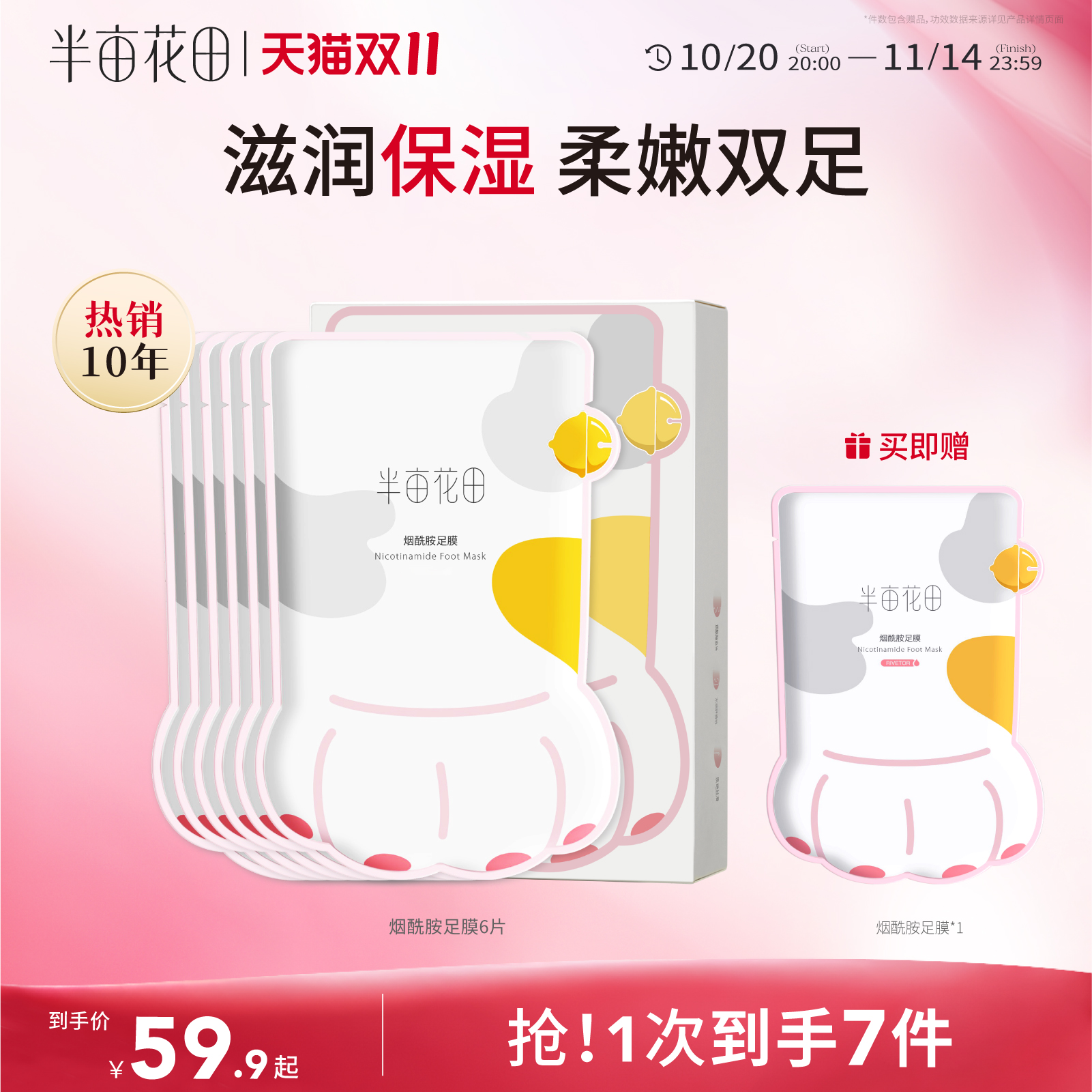 半亩花田猫爪脚膜套足膜保湿补水烟酰胺脚部护理女脚后跟干裂死皮
