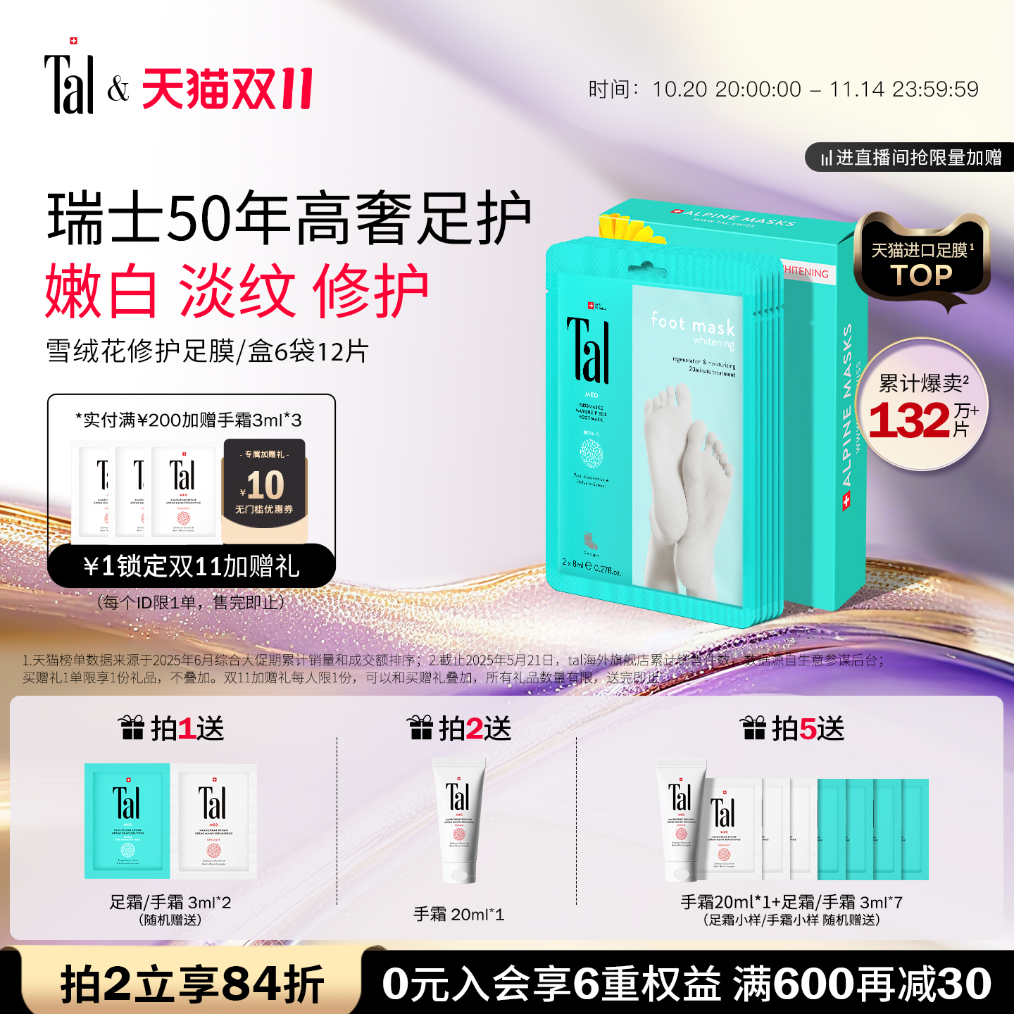 【下单立减50】升级山羊奶烟酰胺脚膜美足护理滋润嫩滑足膜LJ主
