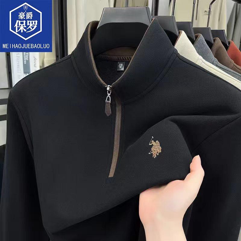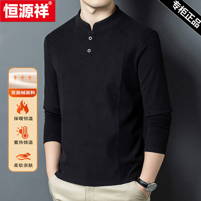 恒源祥高档德绒秋冬季新款男士亲肤保暖纯色卫衣休闲立领打底衫男