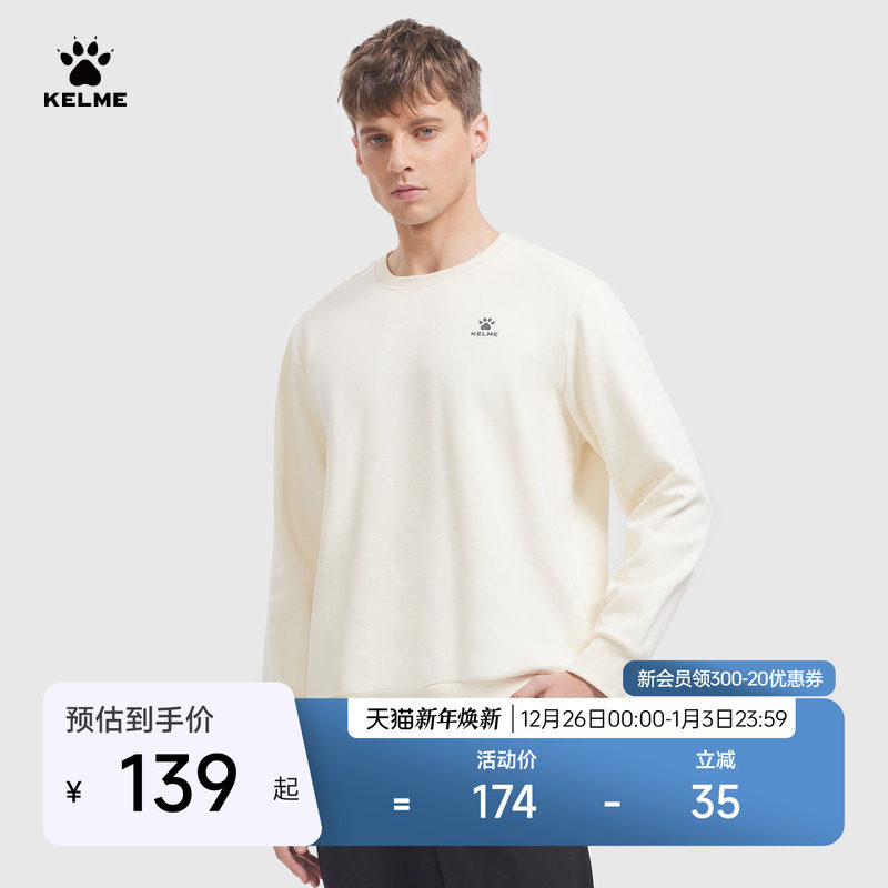 KELME卡尔美2025秋冬纯色卫衣男士运动无帽百搭休闲圆领套头衫