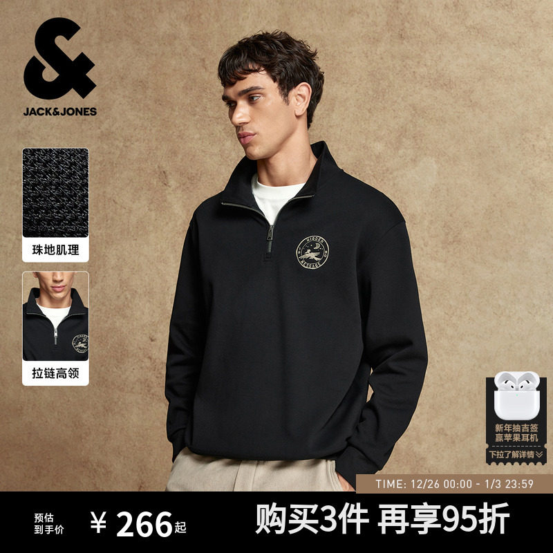 【半拉链立领】杰克琼斯男装秋冬新款纯色卫衣刺绣外套宽松含棉男