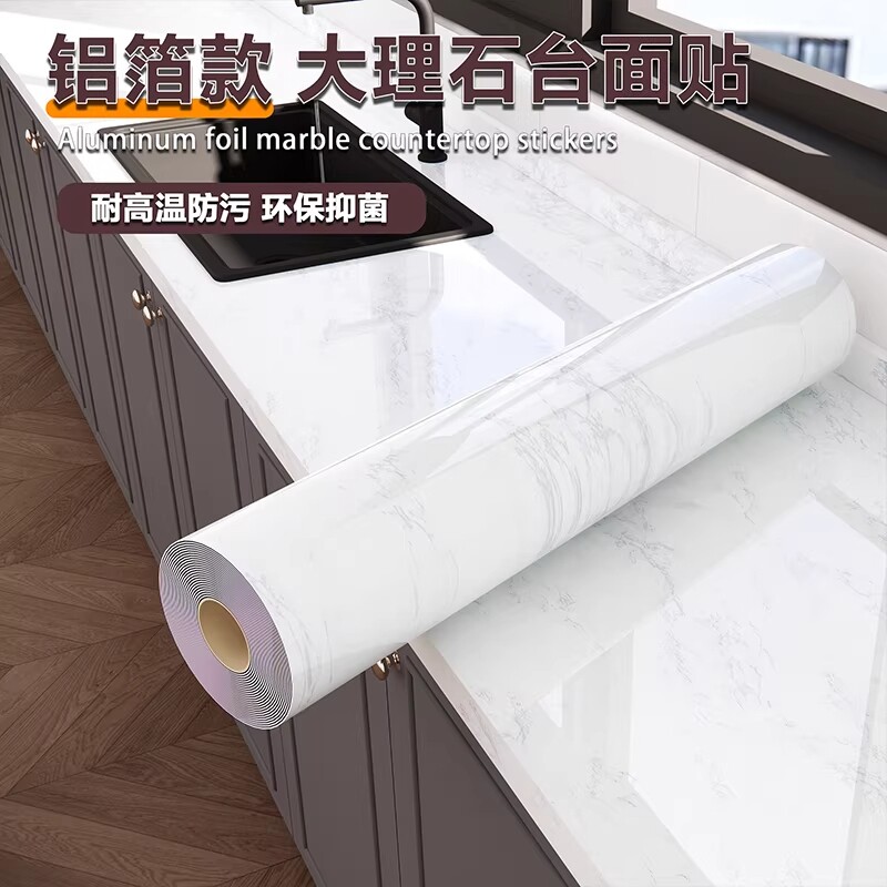 100米大卷防水防油大理石壁纸餐桌灶台粘贴纸自翻新高温厨房加厚