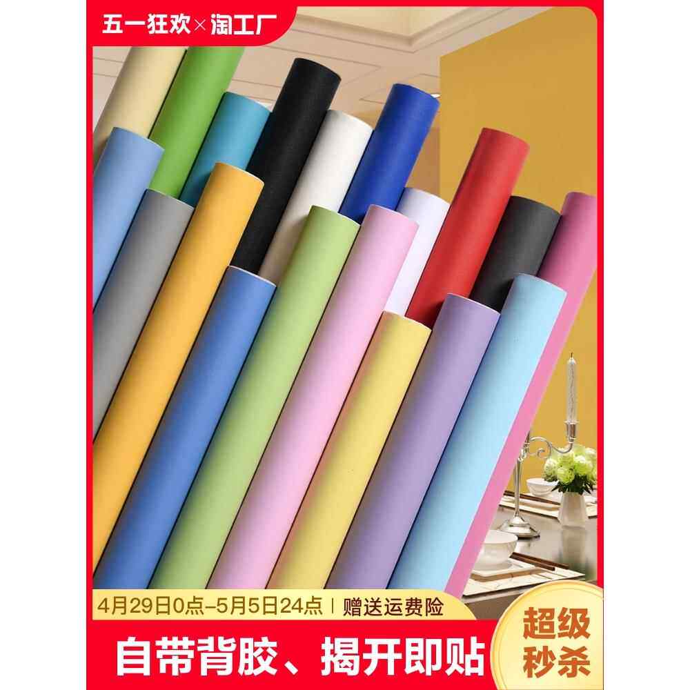 纯色壁纸宿舍大学生n寝室墙上墙面改造自粘壁纸遮丑翻新贴纸高级