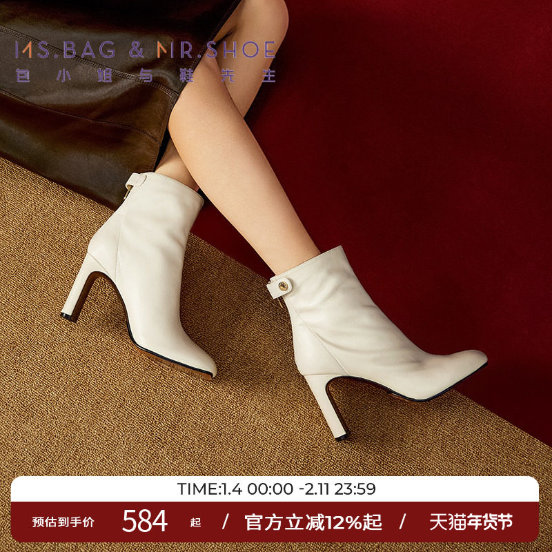 大东切尔西女靴2026秋冬新款粗跟高跟法式小裸靴白色靴子加绒短靴
