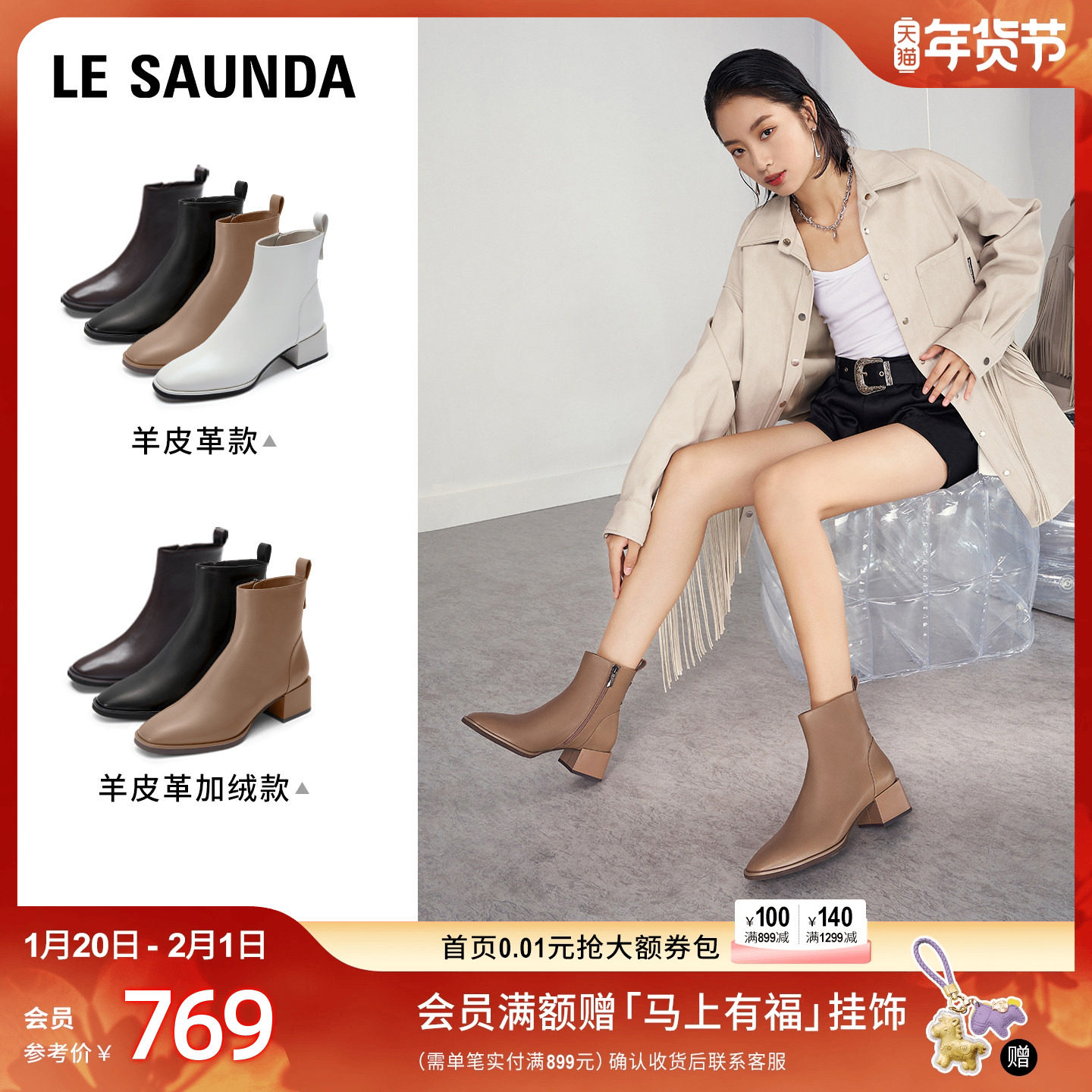 星期六超软切尔西短靴女2025新款冬季加绒高跟靴方头粗跟马丁皮靴