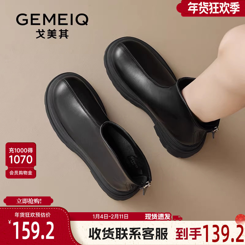 戈美其厚底切尔西短靴女2024新款秋冬英伦风增高英伦风靴子马丁靴