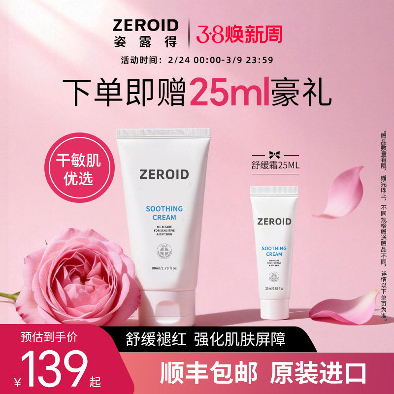 ZEROID姿露得韩国进口舒缓霜滋润保湿面霜锁水温和敏肌可用