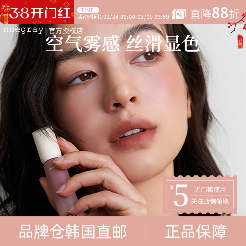 【韩国直邮】nuegray丝绒唇釉口红唇泥哑光雾面秋冬红棕柔雾裸色