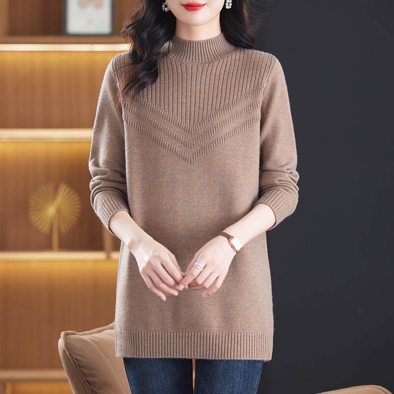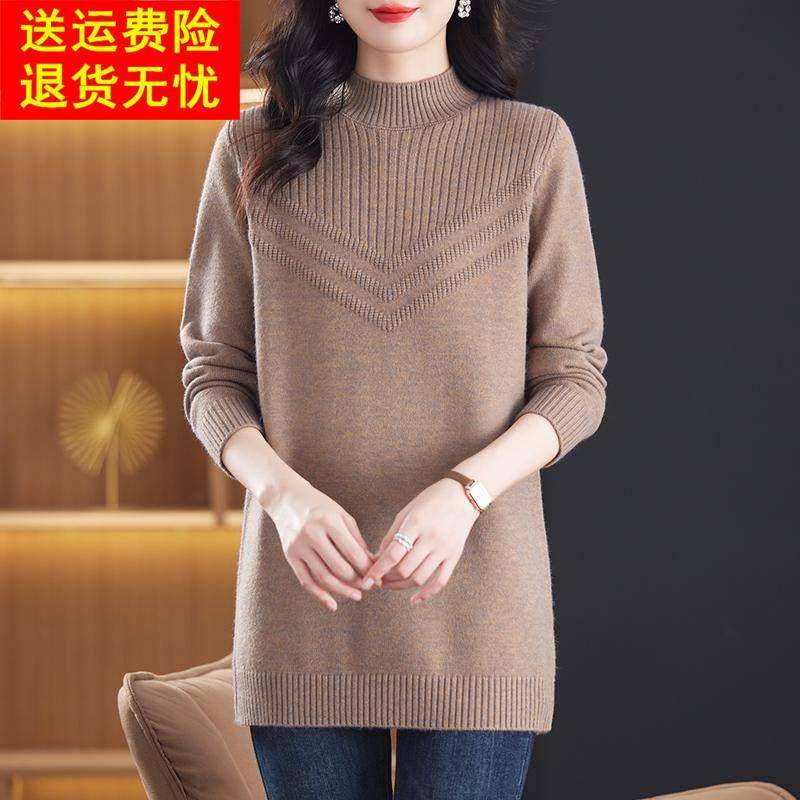 冬季半高领中长款毛衣裙女洋气妈妈装宽松加大码内搭遮屁股羊毛衫