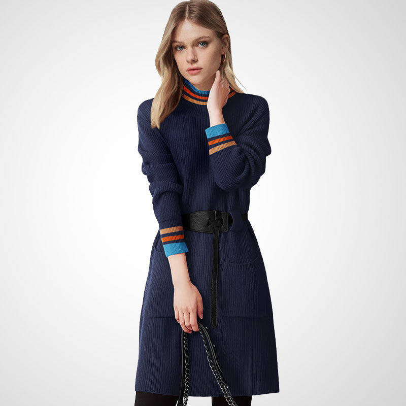高领中长款毛衣裙[第1名]