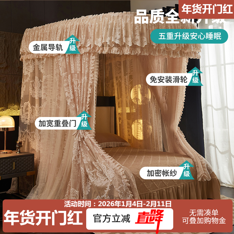 u型蚊帐家用2025新款免安装卧室高级导轨道公主落地床帘支架加厚