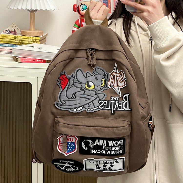 新款小众美式复古风哥斯拉休闲小怪兽双肩包垂感潮流嘻哈帆布书包