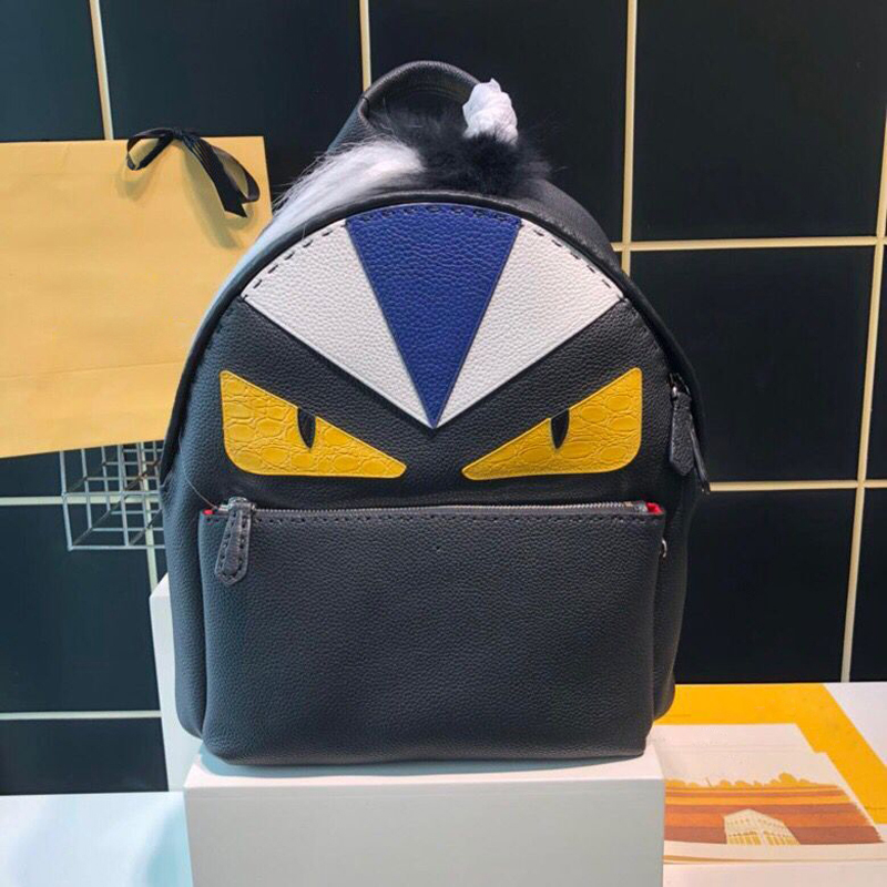 韩版新款头层牛皮小怪兽双肩包男士休闲撞色恶魔旅行包潮眼睛书包