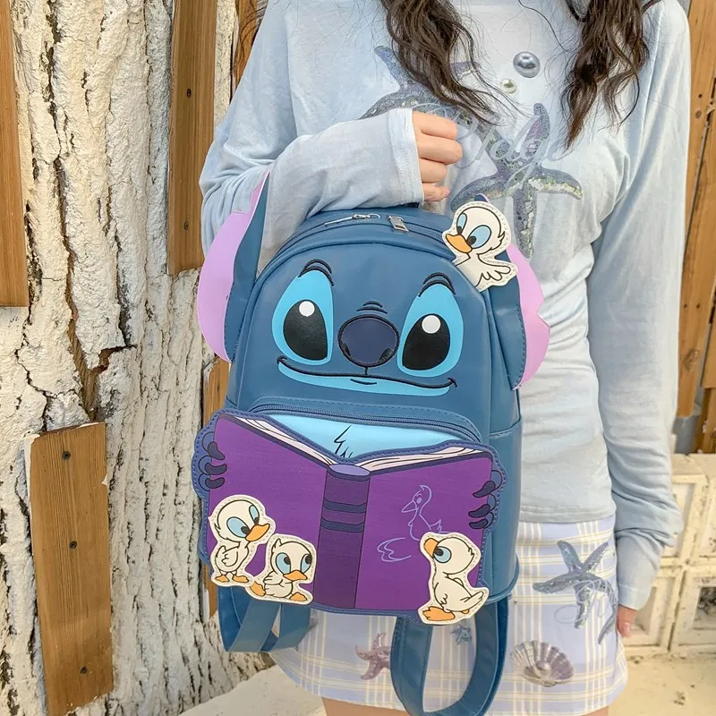粉色樱花小怪兽金仔史迪奇抱抱鸭毛绒玩偶双肩包可爱卡通公仔背包