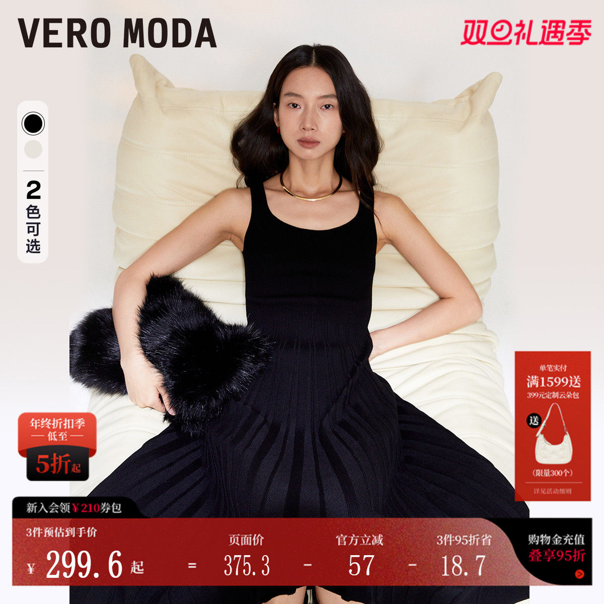 Vero Moda连衣裙2026春季新款含绵羊毛飘带百褶年会礼服32617A003