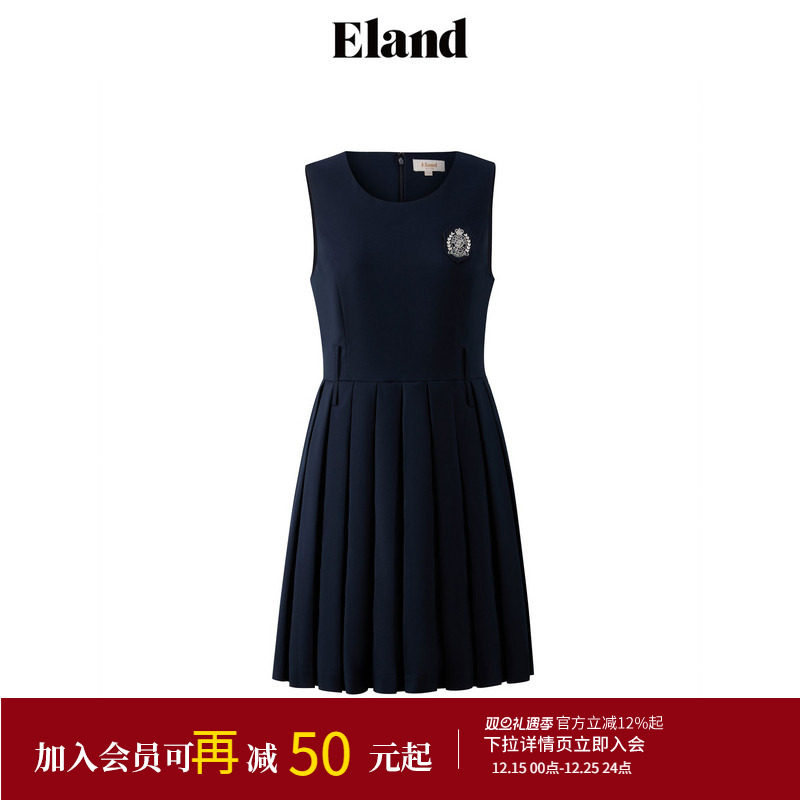 Even一雯【你的名字】韩系高智秋冬气质假两件厚款百褶收腰连衣裙