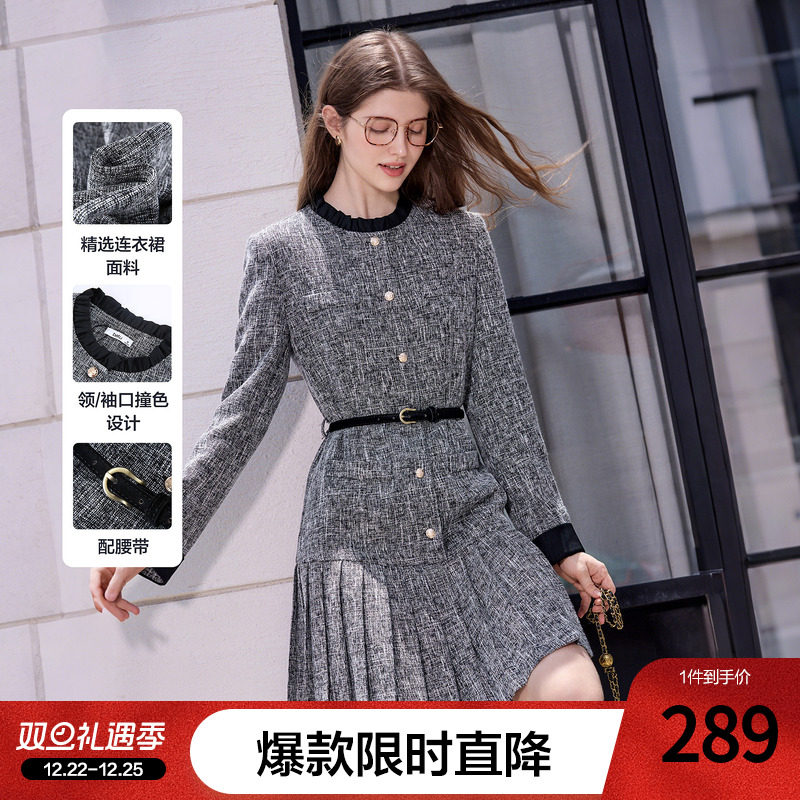 Even一雯【凛冬恋歌】韩系高智感假两件连衣裙女秋冬收腰百褶裙