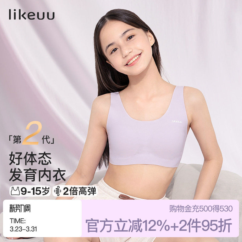 likeuu儿童内衣学生初高中女大童粉底液隐形发育期少女文胸小背心