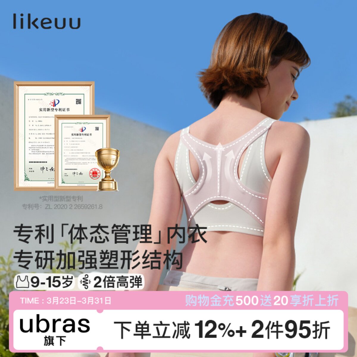 likeuu女童内衣青春发育期初中学生少女文胸青少年驼背矫正神器