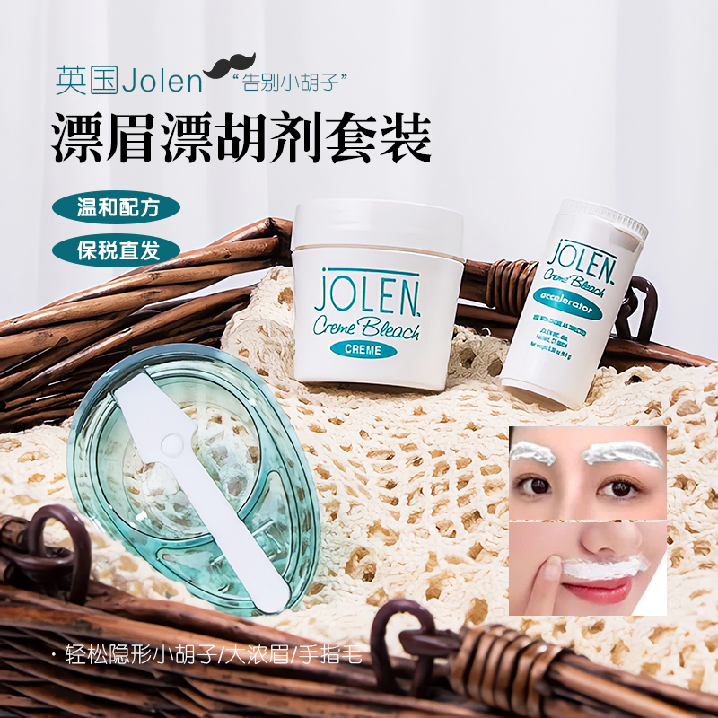 美国jolen漂眉膏保税漂淡眉毛染眉剂女士温和低敏漂胡剂唇毛脱色