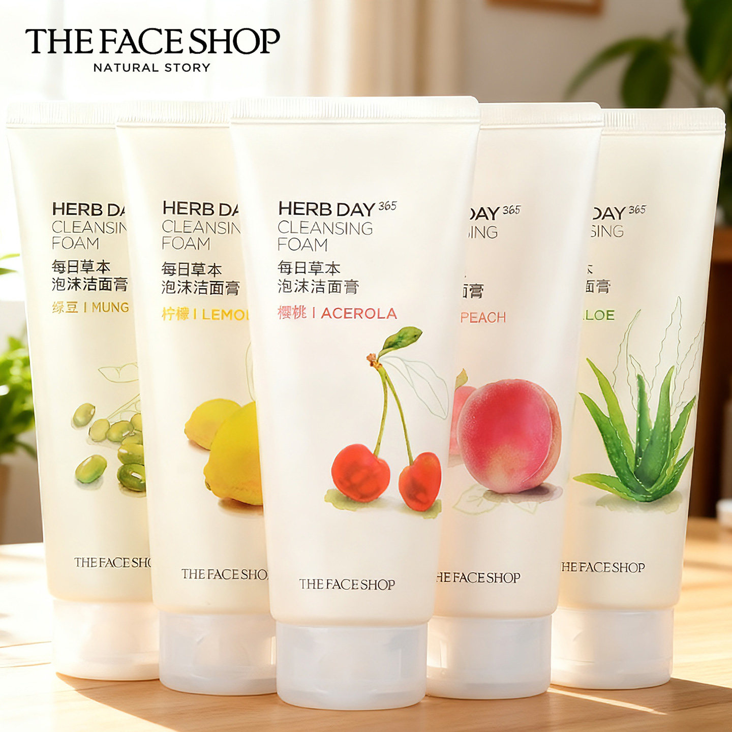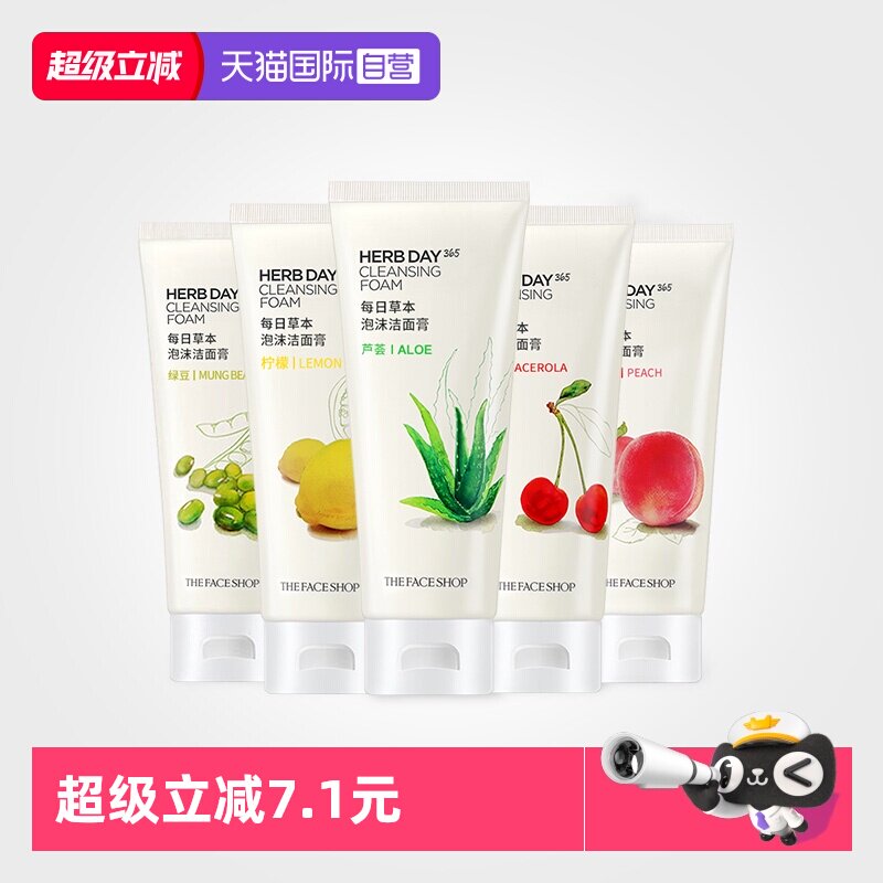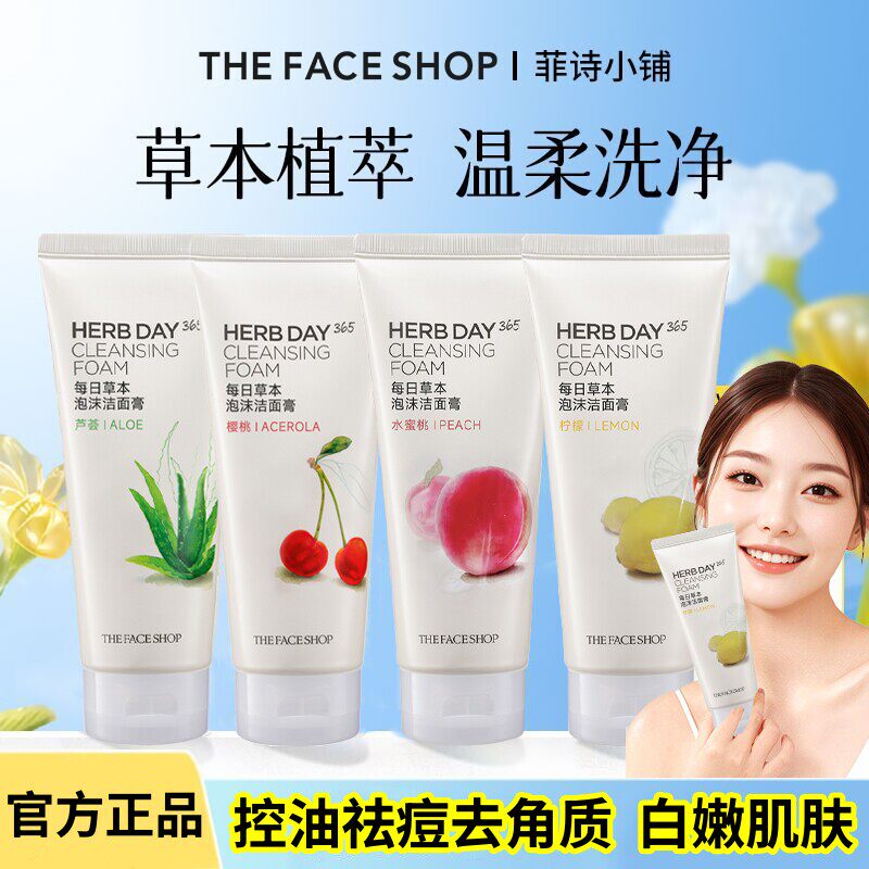 The Face Shop菲诗小铺HERB DAY365洗面奶蜜桃樱桃芦荟170ml